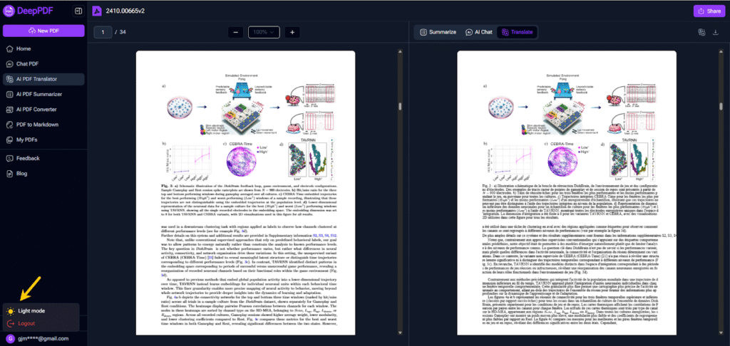 I uploaded a 40-page paper written in French and clicked “Translate.” Within minutes, DeepPDF’s AI PDF Translator generated a perfectly formatted English version — headers, charts, references, and all.