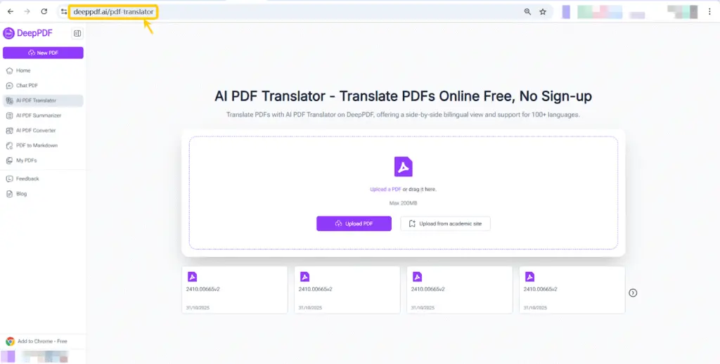 Then I found DeepPDF’s AI PDF Translator.