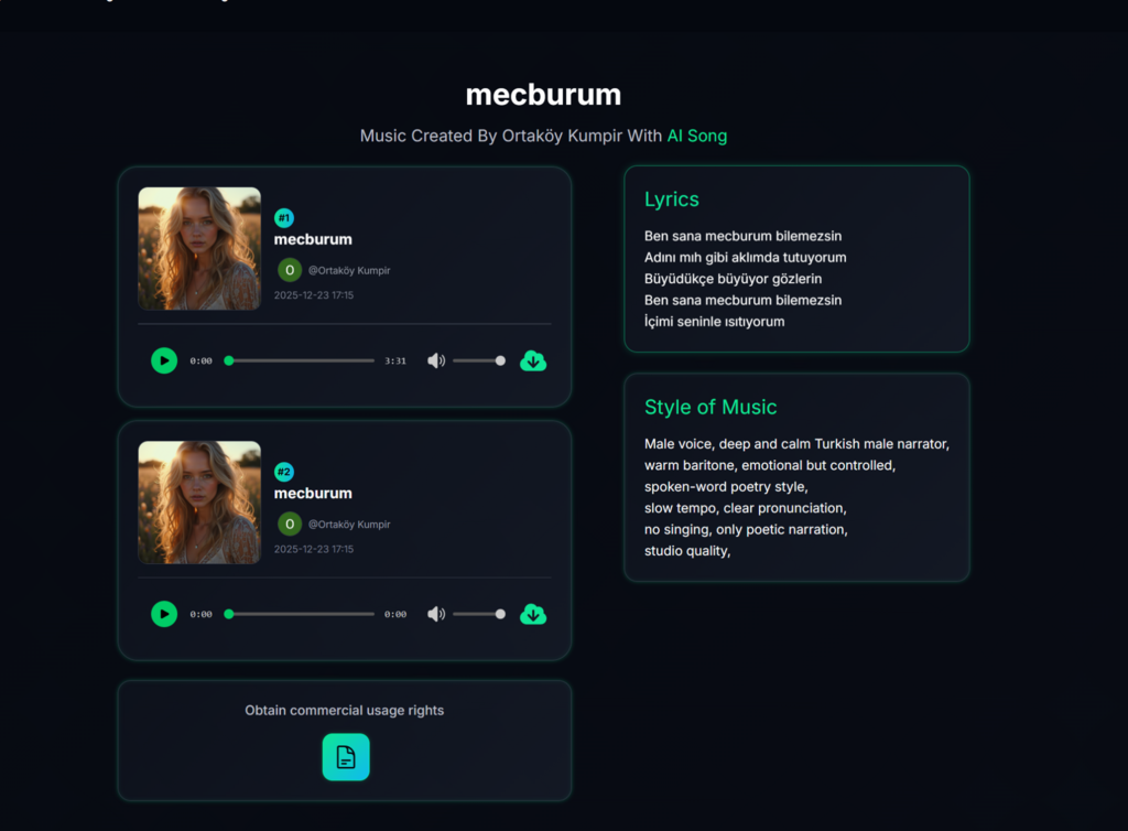 - Workflow: Use the text to song feature to generate a short jingle. Prompt for “high energy, pop style, catchy hook.” Sync the beat drops with your video transitions for maximum impact.